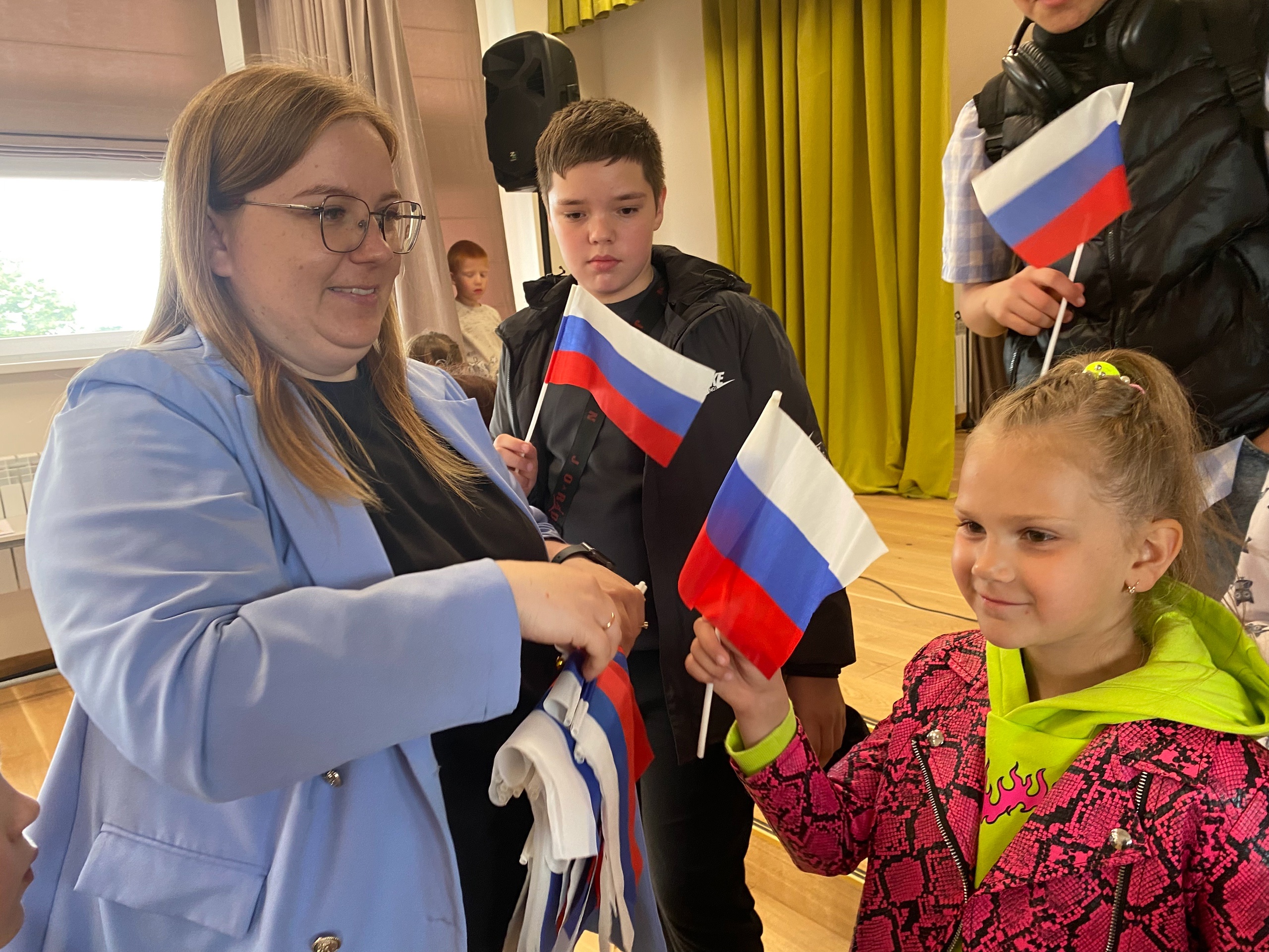 Победители были награждены небольшими подарками в виде флажков с флагом Российской Федерации.